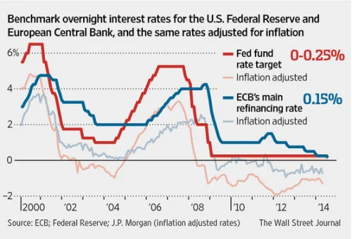 In many economies – including Europe and the United States – real (inflation-adjusted) interest rates have been negative, sometimes as much as -2%. And yet, as real interest rates have fallen, business investment has stagnated.