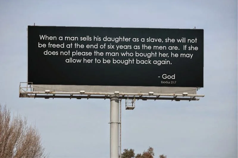 In the images at the top, you can see other passages in which the Bible gives some relatively unrestrictive regulations on slave-holding and slave-buying and selling into slavery, and tells those in bondage to accept their status. There are many other images about slavery in the Bible that I could have chosen from:
