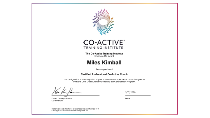 I am one of the few economists who is certified as a co-active coach. (See “Co-Active Coaching as a Tool for Maximizing Utility—Getting Where You Want in Life.”) Because I love economics and hope to make our discipline better, I am offering the program free to economists and their families. At least every 7 weeks I am starting a new “Positive Intelligence Circle,” or “PQ pod” for short. Typically there are nine participants and two co-leaders each time. Bex Bassin, John Belge and my wife Gail Kimball have been co-leaders of these Positive Intelligence Circles with me.
