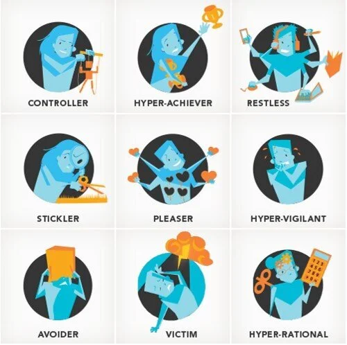 You then work on your “saboteurs,” or other habitual behaviors that are more varied across different people. They include problems associated with being controlling, hyper-vigilant, restless, hyper-rational, and with desires to hyper-achieve, please, avoid, etc.