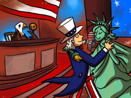 [Note on the cartoon: My technical and blog etiquette expert Diana Kimball tells me it is proper etiquette to acknowledge the origin of photos by linking to the source. I won’t go back and do that on all of my earlier posts, but I wanted to give you the link to this one because I found it early on, and then was frustrated that I couldn’t find it when it came time to post “Leading States in the Fiscal Two-Step." I love this cartoon. It is much better than the cartoon I previously had of Uncle Sam dancing with Lady Liberty. Here is the link. From the site, it looks as if you can ask people online to draw pictures for you pro bono–something useful for every blogger to know. Has anyone had any experience with this?]
