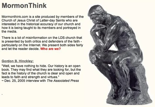 Title page of the MormonThink website that may get David Twede excommunicated