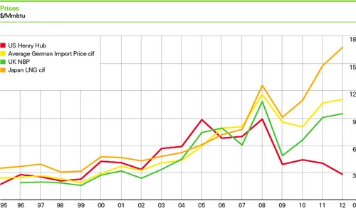 Also reported in WSJ, Obama’s government is taking measures to curb the Russia’s stranglehold over EU’s natural gas supply. US is currently one of the biggest natural gas production nations in the world due to one of its most advancing tech in this field: fracking. The strategy is to increase natural gas exports to the EU from the US, reducing the EU’s dependence on Russian gas. Compared to Russia, US has a big initial cost advantage that can help balance out transportation costs. As the graph from BP’s official site showed below, the natural gas price has kept falling over recent years in North America. The price in US is far lower than that of Asia and Europe.
